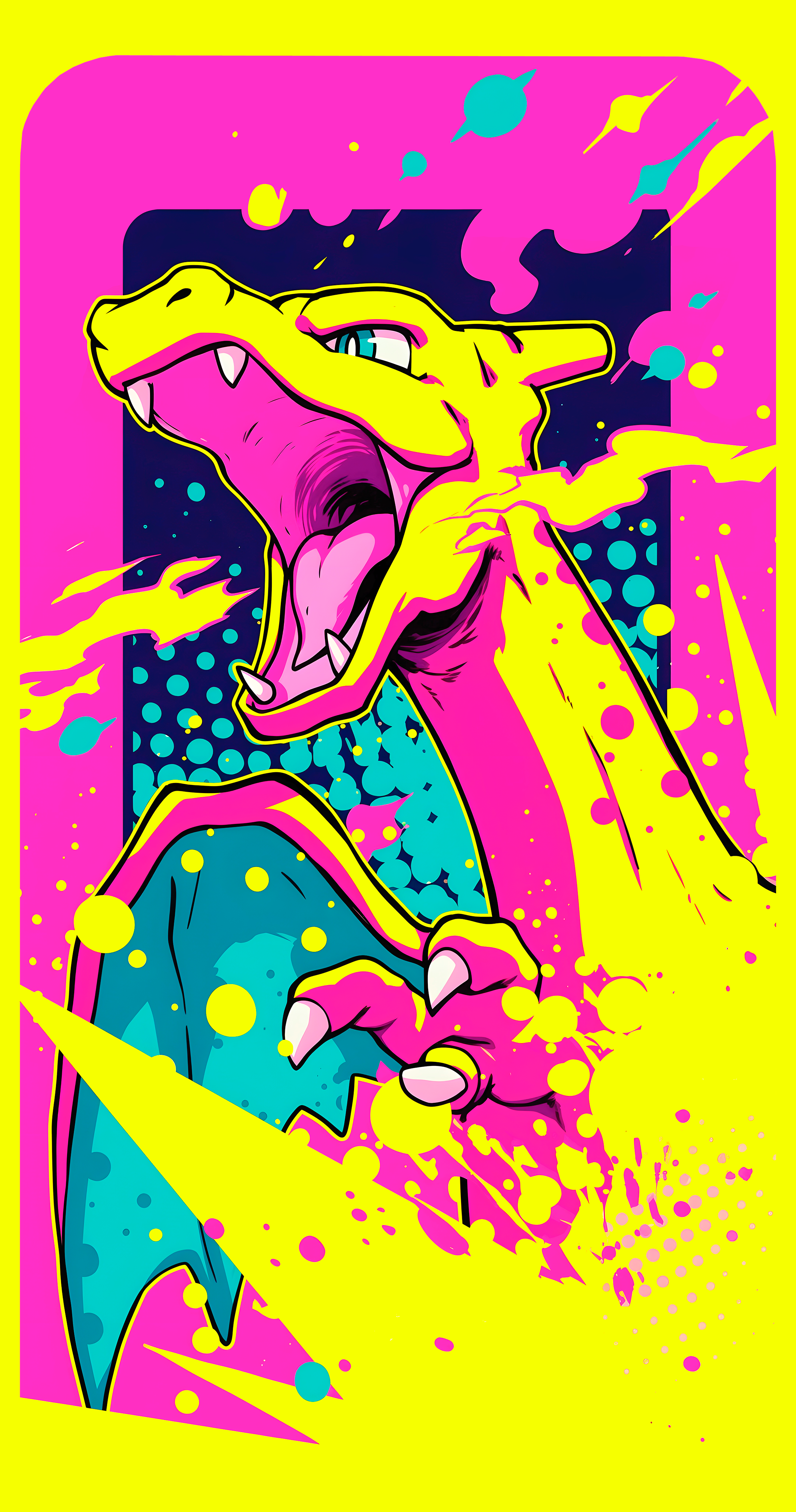 Ready to make a splash? This eye-popping tee captures the intense power of Charizard in a unique pop art, splatter-paint style